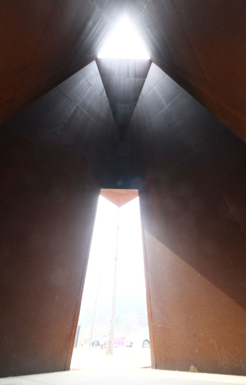 인위적인 마감이나 치장을 거부하고 자연의 비바람을 맞으며 스스로 단단해지는 이 재료는 척박한 환경 속에서도 굳건했던 선생의 삶을 닮았다. 10년, 20년의 세월이 흐르며 표면이 짙은 암적색으로 변해가는 과정은 건축물이 살아있는 생명체처럼 느껴지게 하며, 결국 이 암적색의 외벽은 주변 숲과 동화되어 선생을 기억하는 묵직한 장치로 남게 된다.