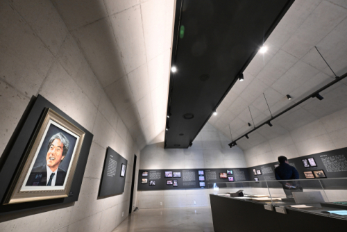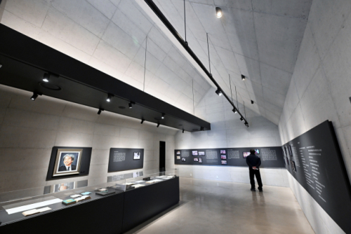 특히 소박한 박공지붕의 원초적인 느낌을 내부에서도 온전히 유지하기 위해 일반적인 전시관에 쓰이는 흡음재마저 과감히 덜어냈으며, 화장실 환기 배관이나 조명 트랙 등 필수적인 설비는 천장에 매립하지 않고 검은색으로 마감해 결합하는 방식을 택했다. 빛과 그림자의 짙은 대비 속에서 전시된 선생의 유품과 사진 기록물들은 불필요한 장식이 제거된 이 건조한 공간 속에서 더욱 묵직한 울림을 전한다.