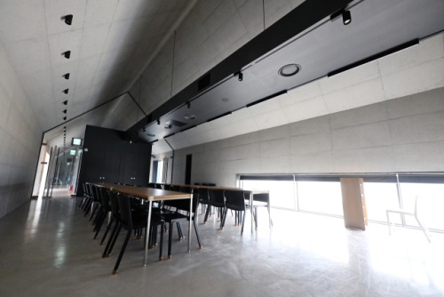■ 노출 콘크리트와 세 가지 색채로 비워낸 내부 공간= 내부 공간 역시 철저히 비움과 절제의 미덕을 따른다. 전시실, 교육실, 북카페 등의 내부는 화려한 인테리어를 배제하고 '회색(노출 콘크리트 벽과 바닥)', '검은색(노출된 설비)', '나무색(목재 가구)'이라는 단 세 가지의 단순한 색감으로만 구성되었다.