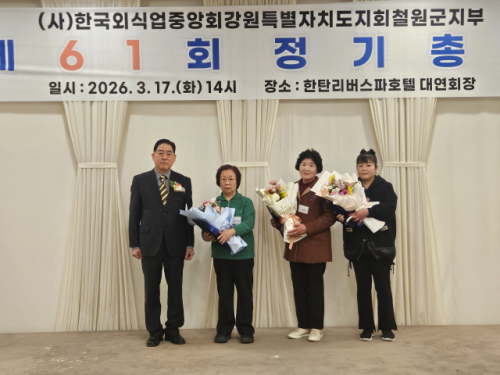 【철원】(사)한국외식업중앙회철원군지부는 지난 17일 오후2시 한탄리버스파호텔 대연회장에서 제61회 대의원 정기총회를 열었다.