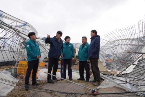 정창수 양구군의장과 조돈준·김정미·김기철 의원은 18일 강풍이 발생했던 해안면 강풍 피해 농가을 찾아 상황을 점검했다.