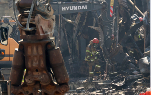 현장에 도착한 이 대통령은 소방 관계자들로부터 시간대별 조치 내용과 사망자 등 인명 피해 현황을 보고받은 뒤, 붕괴한 건물 잔해를 살펴보며 “무너져 있는데 실종자들은 어떻게 찾고 있느냐”고 물었다.