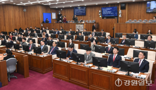 도의회는 24일 본회의장에서 김용복 부의장 및 도의원, 김진태 지사, 신경호 도교육감 등이 참석한 가운데 제344회 임시회를 개회했다. 이날부터 4월3일까지 제1차 도정 및 교육행정 질문, 도교육청 제1차 추가경정예산안 심의, 조례안 심의 등이 진행된다.