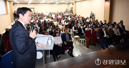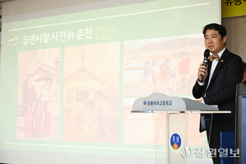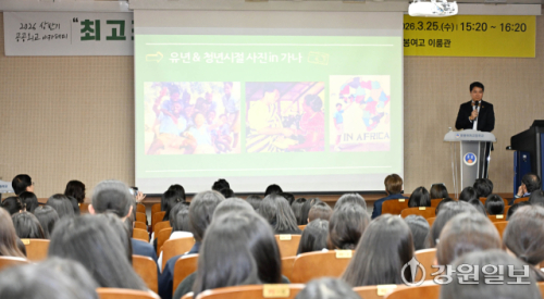 최고조 주한 가나대사가 25일 춘천 유봉여고에서 진로 특강을 하고 있다. 이번 특강은 춘천시 공공외교 아카데미 일환으로 열렸다.