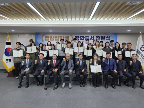 김천수 이사장은 "강원도 미래인재 육성 및 강원도 자긍심 제고 차원에서 우수학생들이 학업에만 전념할 수 있도록 매년 장학금을 수여해 왔다"며 "더욱 노력해 국가발전에 큰 역할을 하는 인재로 성장해 달라"고 당부했다.
