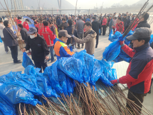 【영월】2,000여명의 영월군민이 참여한 나무심기 실천이 동강 둔치를 가득 채웠다.