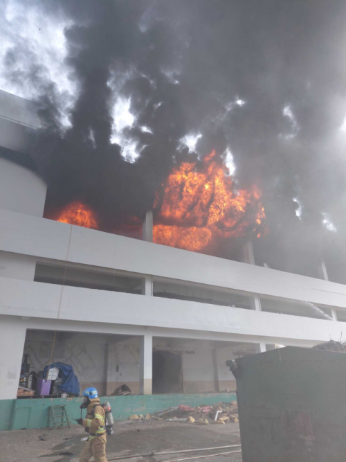 불이 나자 작업중이던 인부들은 신속히 대피, 인명피해는 없었다.