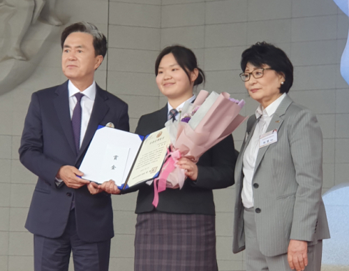 ◇신채윤 학생은 지난 1일 충남 천안 독립기념관 겨레의 집에서 열린 ‘제25회 유관순상 시상식’에서 유관순 횃불상을 수상했다.