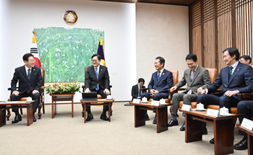 이 대통령은 이날 국회에서 중동 사태 대응을 위한 추가경정예산안에 대한 시정연설에 앞서 우원식 국회의장, 여야 지도부와 환담한 자리에서 이같이 말했다.