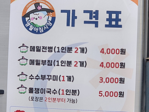영월 지역 방문객은 지난해 대비 10배가 늘었지만, 사실과 다른 온라인 게시글이 확산되며 지역을 흔들고 있다(서부시장 내 메뉴판).