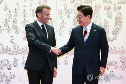 이 대통령은 "한반도 평화와 관련해서도 양국이 긴밀한 공조를 이어 나가길 희망한다"며 "마크롱 대통령의 이번 방한은 양국 관계의 새로운 이정표가 될 것"이라고 강조했다.