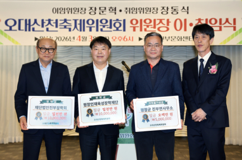 또 오대산천축제위원회는 평창인재육성장학재단에 장학금 1,000만원을 기탁하며 지역 인재 육성에 힘을 보탰다.