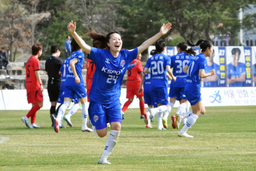 2026 WK리그 화천 KSPO와 강진WFC와의 홈경기 개막전이 지난 4일 화천생활체육공원에서 펼쳐졌다. 공식행사에서 참가 선수들이 최문순 군수와 송호관 화천군체육회장을 비롯한 내빈들과 함께 기념촬영을 하고 있다. 이날 경기에서 화천KSPO는 이수빈과 키타카타가 각각 한 골씩 성공시키며 2대0으로 승리했다.