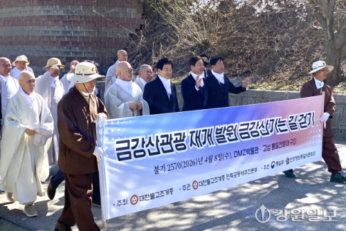 대한불교조계종 민족공동체추진본부(본부장:성행스님)는 8일 고성 DMZ 박물관에서 금강산 관광 재개를 공론화하고 실질적 교류 발판을 마련하기 위한 ‘금강산관광 재개 발원 남북의 평화와 화합을 위한 기원법회’를 열었다.
