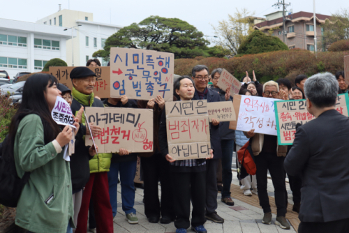 춘천지법 1-2형사부는 10일 열린 항소심 선고공판에서 업무방해, 건조물침입, 특수건조물침입 등 위반 혐의로 기소된 아카데미의 친구들 범시민연대(이하 아친연대) 소속 23명에게 무죄를 선고했다. 다만 나머지 1명은 이날 법정에 출석하지 않아 다음 기일에서 판결을 받게 된다.