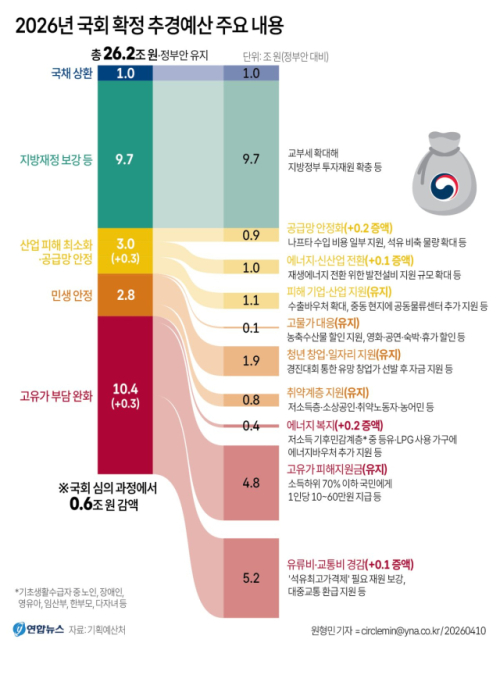 한편, 청와대는 추경안이 의결되자 즉각 "여야가 중동전쟁으로 인한 위기 앞에서 국익을 우선한 초당적인 협력으로 신속하게 처리해준 것에 감사드린다"는 입장을 밝혔다.