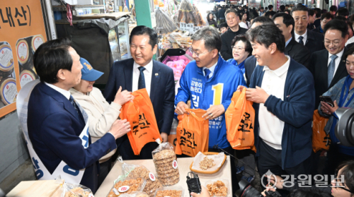 정 대표는 전날 강릉을 시작으로 1박2일간 강원 지역을 돌고 있다. 이날 오전엔 속초 중앙시장을 찾아 민주당 예비후보들도 지원사격했다.