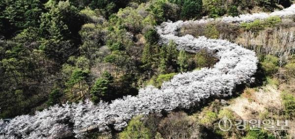 15일 춘천시 북산면 부귀리에 벚꽃이 만개해 상춘객들이 봄의 끝자락을 만끽하고 있다.