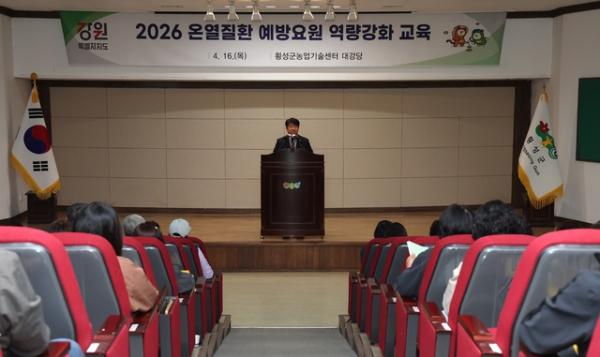 강원특별자치도농업기술원은 16일 횡성군농업기술센터에서 ‘2026 온열질환 예방요원 역량강화 교육’을 실시했다.