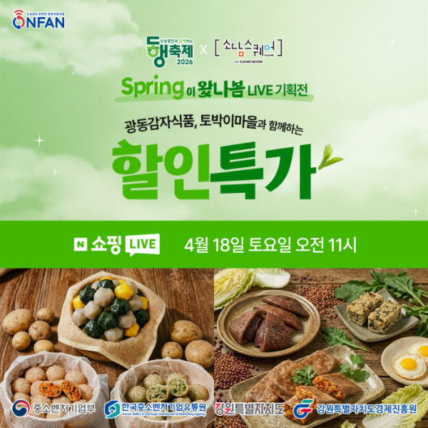 강원지방중소벤처기업청(청장:서종필)과 소담스퀘어 강원은 18일 오전 11시, 오후 2시에 소상공인 라이브커머스를 진행한다.
