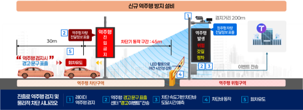 원주지방국토관리청은 자동차전용도로 내 빈번히 발생하는 역주행 사고 예방을 위한 시스템을 구축, 시범운영에 들어갔다고 16일 밝혔다.