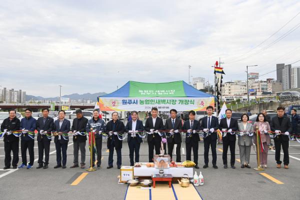 이날 개장식에는 송기헌·박정하 국회의원과 김문기 시장 권한대행, 곽문근 시의회 부의장, 서동면 강원특별자치도경제진흥원장, 김주석 NH농협 시지부장, 지경식 농업인새벽시장 원주시협의회장, 상인 관계자 등이 참석했다. 대박 기원 고사를 시작으로 풍물패 공연, 다과회 등 기념행사가 진행됐다.