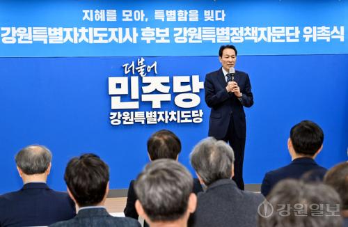 한편, 우 후보 선대위는 이날 대규모 정책 자문 기구인 ‘강원특별정책자문단 위촉식’을 공식 출범시키며 조직 확대에 나섰다. 고문단에는 권호열· 김기석 강원대 명예교수, 이기원 한림대 명예교수가 위촉됐다. 공동 자문단장에는 송영훈 강원대 사회과학대학장, 류종현 상지대 특임교수, 강승호 강원대 교수가 이름을 올렸다.