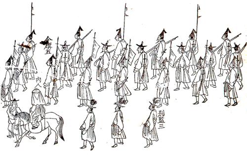 다큐영화에서 가장 압도적인 장면은 한강을 건너는 배다리(舟橋)와 끝없이 이어지는 행렬이다. 의궤에 기록된 행렬 인원은 6,000여 명, 동원된 말은 1,400여 필에 달한다 . 단순한 회갑 잔치치고는 지나치게 거대한 규모다. 실록은 이 행차의 성격을 ‘효(孝)’로 규정하지만, 그 이면에는 정조의 친위부대인 ‘장용영(壯勇營)’의 위용이 자리하고 있었다 .