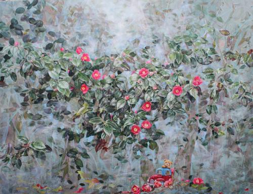 작푼 안에서 동백꽃은 단순한 소재가 아니다. 시간과 감정, 그리고 삶의 지속을 상징하는 중심 이미지로 다시 살아나는 마음의 흔적을 의미한다. 아크릴 물감을 여러 번 덧입히고 긁어내며 만들어진 표면은 지나온 시간의 층을 기록하고, 그 위에 얇게 올려진 유화의 동백은 한 순간 머무는 생명의 장면으로 자리한다.