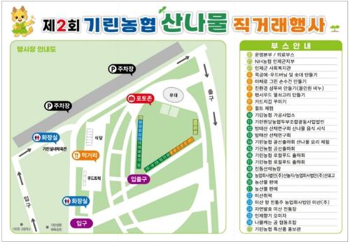기린농협이 24일부터 25일까지 이틀동안 기린생활체육공원 일원에서‘제2회 기린농협 산나물 직거래 판매행사’를 개최한다. 사진은 행사장 안내도