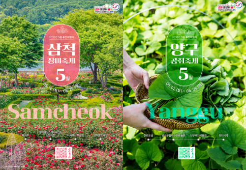 5월에는 푸른 바다를 배경으로 펼쳐지는 장미의 향연이 펼쳐지는 ‘삼척 장미축제’와 청정 민통선 인근에서 자란 곰취의 풍미를 느낄 수 있는 ‘양구 곰취축제’를 집중적으로 홍보할 예정이다.