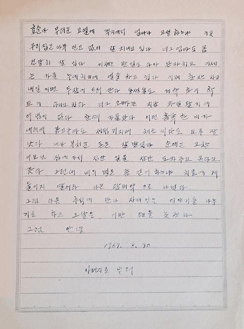 이번 전시는 ‘가족애’, ‘안부’, ‘기다림’을 키워드로, 한 시대를 관통한 아날로그적 소통의 감성을 회화와 글로 풀어낸 자리다. 전시 중심에는 1960~80년대 실제 한 가족이 주고받은 편지가 놓여 있다. 작가는 손글씨로 마음을 눌러 담아 전하던 시절의 기억을 되짚는다.