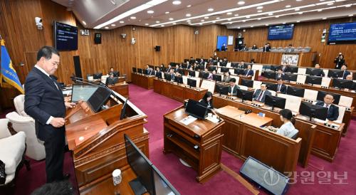 한편 폐회 이후 국민의힘 공천에서 컷오프된 원제용(원주) 사회문화위원장은 도의회에서 기자회견을 열고 “도당 공천관리위원회는 현역 의원 배제 결정의 구체적·객관적 사유를 투명하게 밝혀야 한다”고 주장했다. 윤종현기자 jjong@kwnews.co.kr