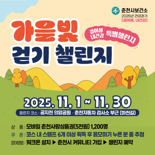 춘천시, 비대면 걷기 이벤트 '가을빛 걷기 챌린지' 운영