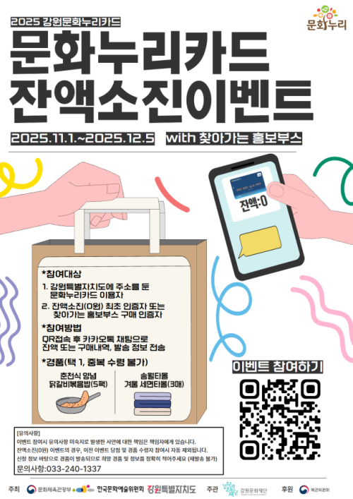 2025-11-03 [23:00:00]강원문화재단 ‘문화누리카드 찾아가는 홍보부스’로 온기 확산