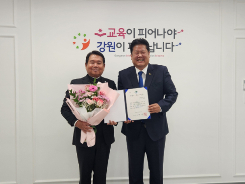 이상호 태백시장, 신경호 교육감에 '태백시 명예시민증'
