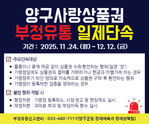 2025-12-03 [00:00:00]“부당이득 강력 조치” 양구군, 건전한 상품권 유통질서 확립 나서