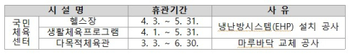 2026-04-02 [16:46:52]동해시 국민체육센터 시설 개선 추진…5월말까지 임시 휴관