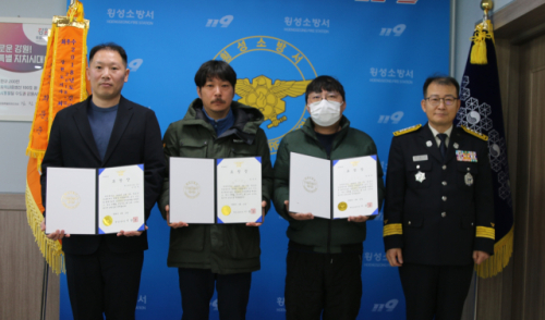 횡성소방서, 휴게소 차량 화재 신속 대응 민간인 3명 표창