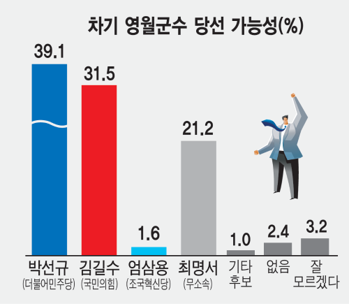 영월군수 선거 박선규 34.3%·김길수 33.4% 초접전…최명서 23.6%·엄삼용 2.6%