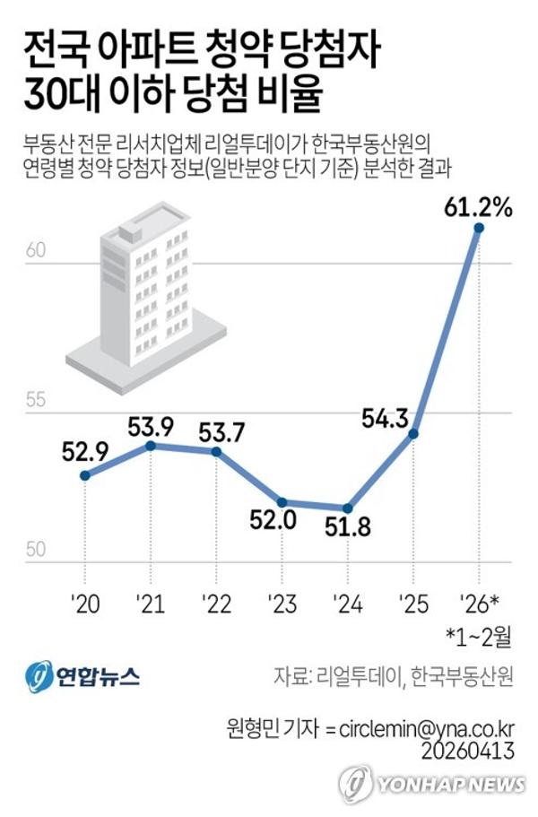 아파트 청약 당첨자 10명중 6명이 30대 이하