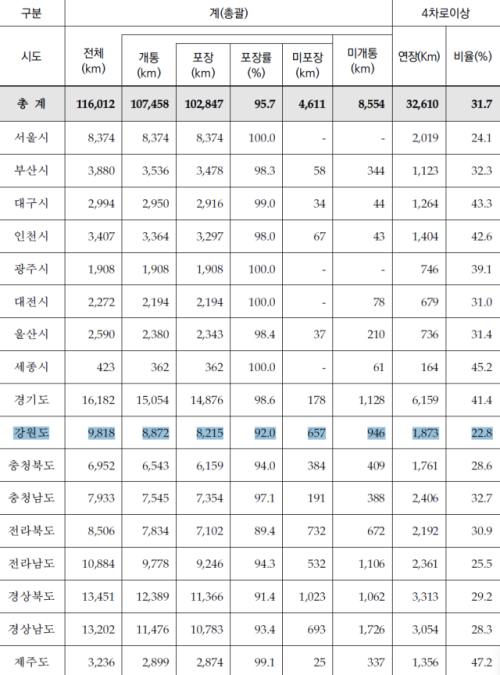 4차선 도로 비율 전국 꼴찌…발표 임박 고속도로·국도 건설 계획에 쏠리는 눈