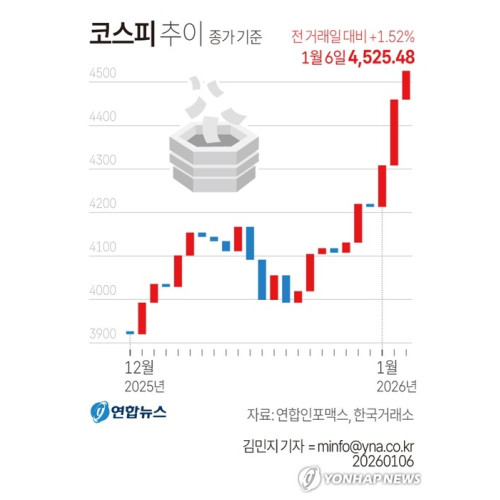 코스피 사흘 연속 신고가에 4,500 고지 넘어