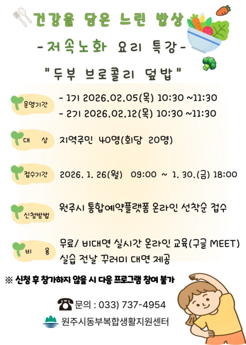 원주시동부복합생활지원센터 저속노화 요리 특강 참여자 모집